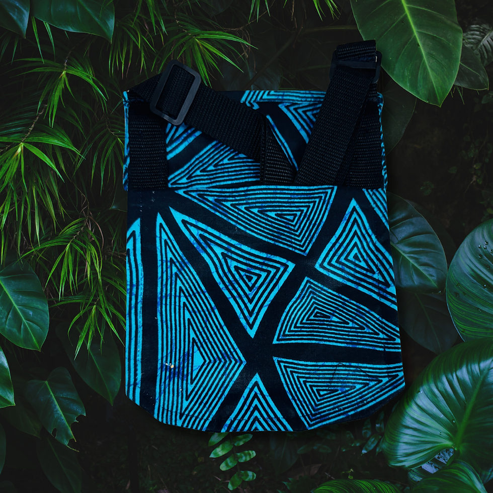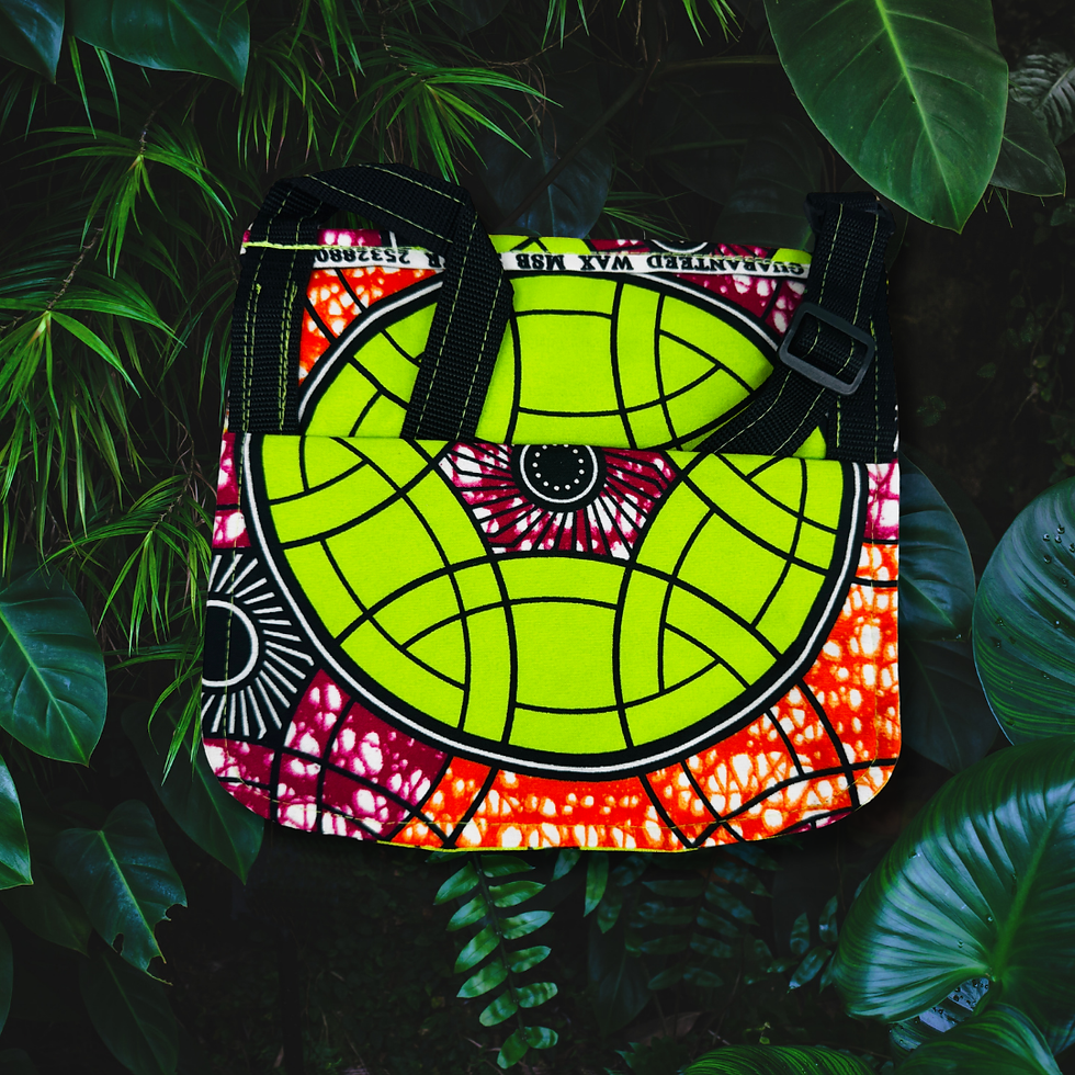 These crossbody bags were lovingly handmade by my father, Daniel Mosiah. Genuine African wax print fabric and upcycled materials were used in the creation of these bags, with the intention of making both a cultural and environmental statement.